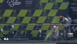 Zarco intanto si lancia abombazza su Pedrosa, stendendolo come un lenzuolo appena uscito dalla lavatrice; Marquez supera Miller come se nulla fosse, per un paio di giri non succede nulla di che fino all’annuncio: la Ferragni ha partorito a Marquez viene detto che visto che in griglia ha ignorato gli ordini, è andato contromano e se n’è sbattuto le natiche del buonsenso deve farsi il ride through a velocità di lumaca.
