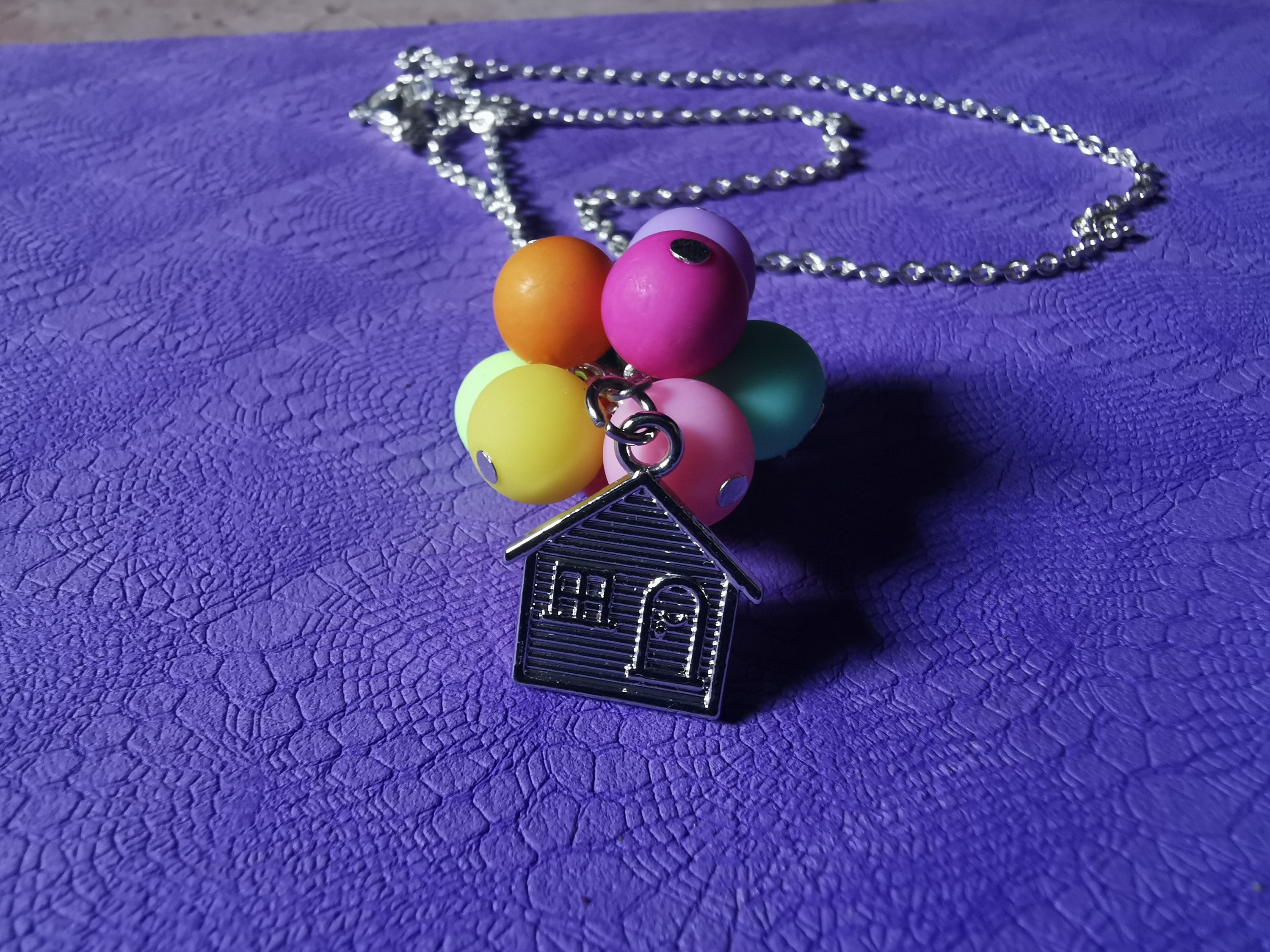 Nella foto c’è la collana, che adoro; i colori sono super brillanti, il materiale è ottimo, mi sembra bello resistente e le dimensioni sono perfette: non troppo ingombrante ma estremamente carino e rimanda immediatamente al film.