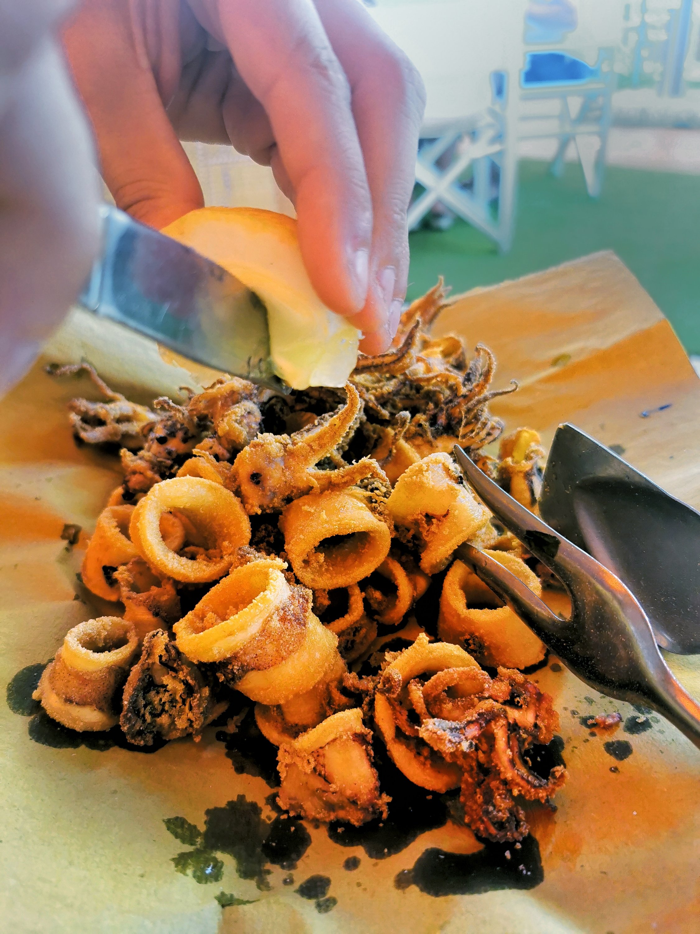 Giungiamo all’alloggio, carinissimo, vista mare -o meglio, vista pioggia perché sì, pioveva pure lì- e dopo un giretto ci siamo fiondati a mangiare come i piccioni quando lanci le briciole nel parco.